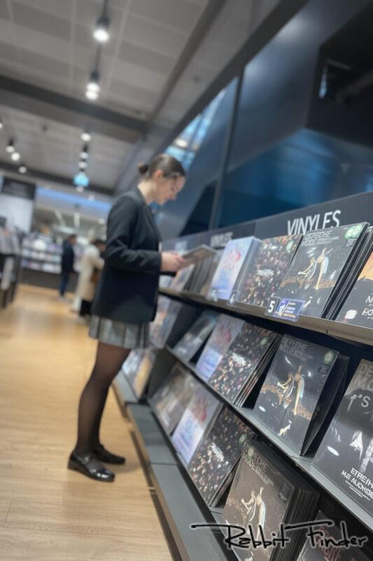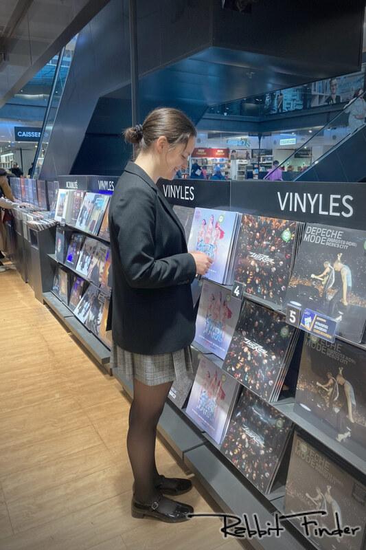 Allez encore une série gentillette, ça vous dit ? Avec un peu de poésie et du "oops, mes bas qui tombent" dans un magasin très connu du centre de Nantes. Dim Up, les bas qui tiennent seuls ? Mon œil ! :) En même temps, ma jupe était un peu courte, je n'avais qu'à mettre un collant. A moins que ce ne soit prémédité, mais ça m'étonnerait. ;) Et puis ça favorise les rencontres avec des gens charmants ! Sauf la fille derrière moi qui me fusille du regard, que je n'avais bien sûr pas vue sur le moment.
