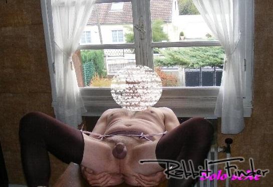 Je m'exhibe en lingerie féminine derrière une fenêtre qui donne sur la rue.